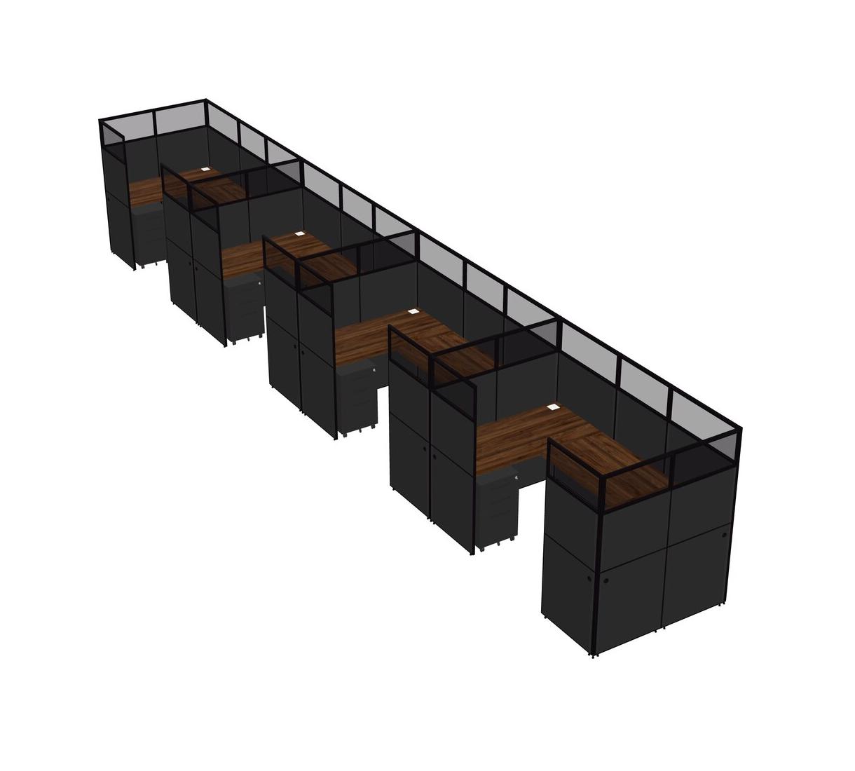 Columbia Walnut U-shaped Panel System For 4 Person + Metal Mobile Drawers For 4 User(s)