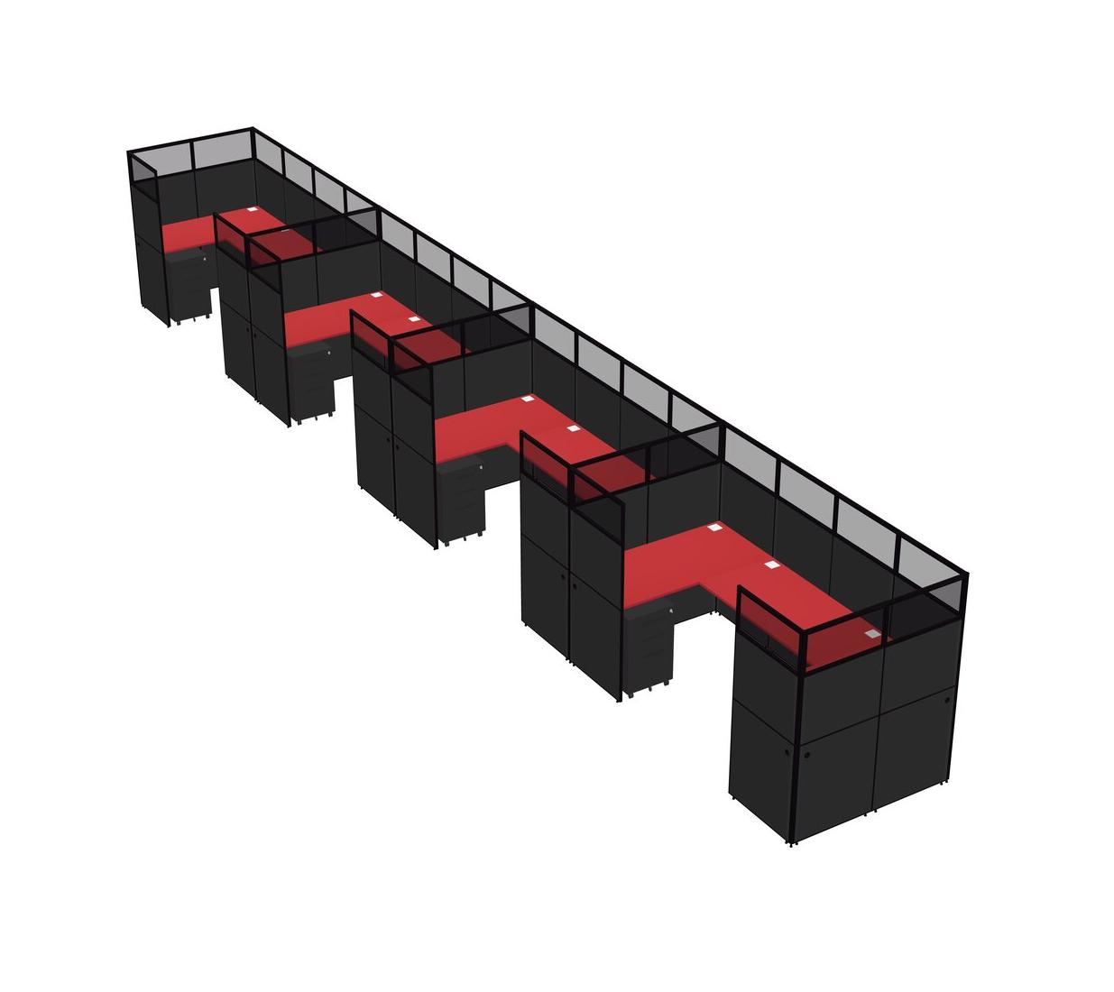 Prism Red U-shaped Panel System For 4 Person + Metal Mobile Drawers For 4 User(s)
