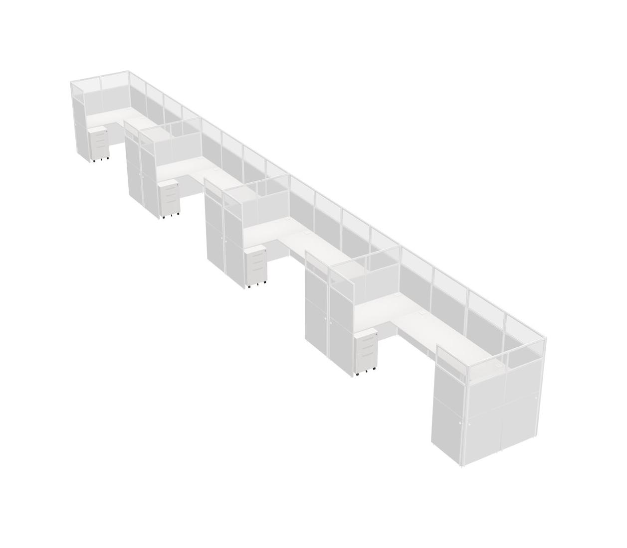 White U-shaped Panel System For 4 Person + Metal Mobile Drawers For 4 User(s)
