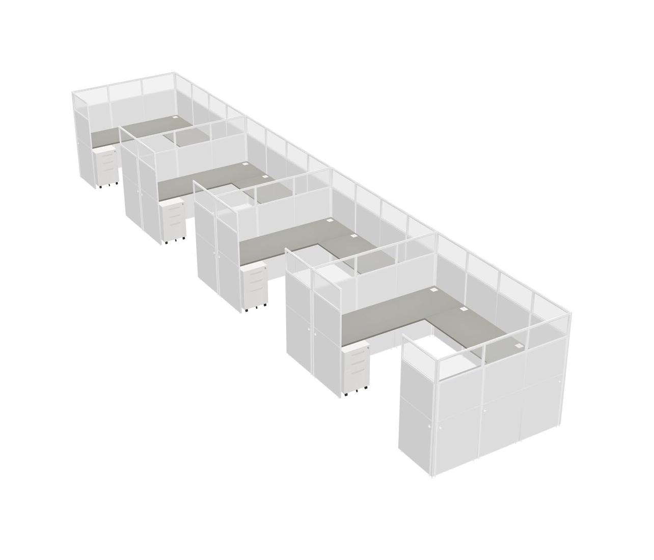 Grey Shadows U-shaped Panel System For 4 Person + Metal Mobile Drawers For 4 User(s)