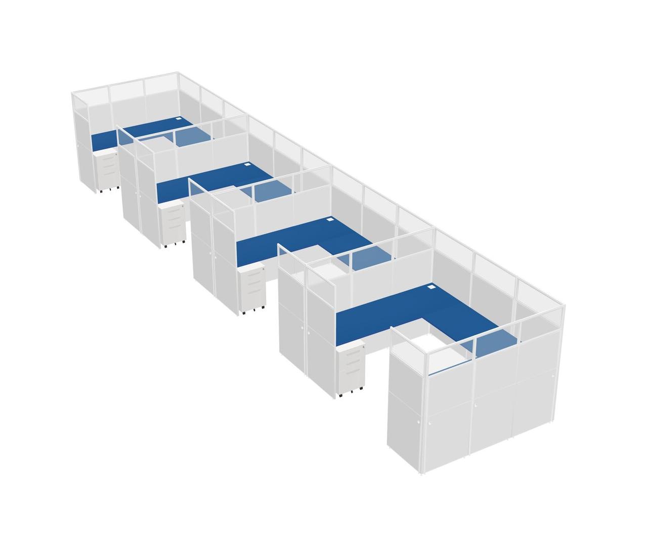 Prism Blue U-shaped Panel System For 4 Person + Metal Mobile Drawers For 4 User(s)