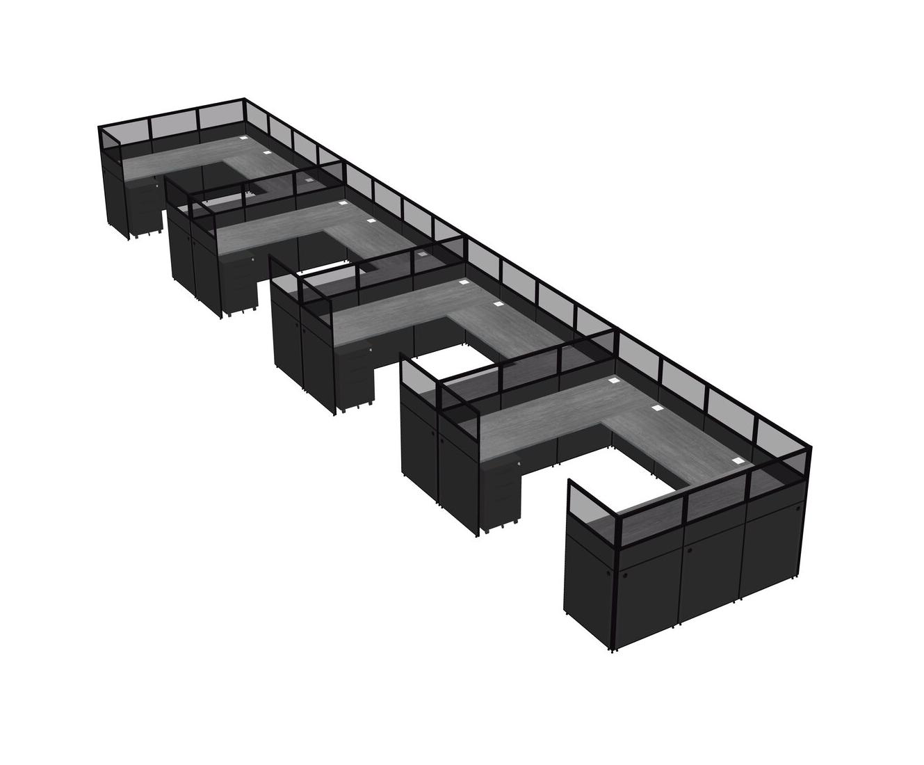 Grey U-shaped Panel System For 4 Person + Metal Mobile Drawers For 4 User(s)