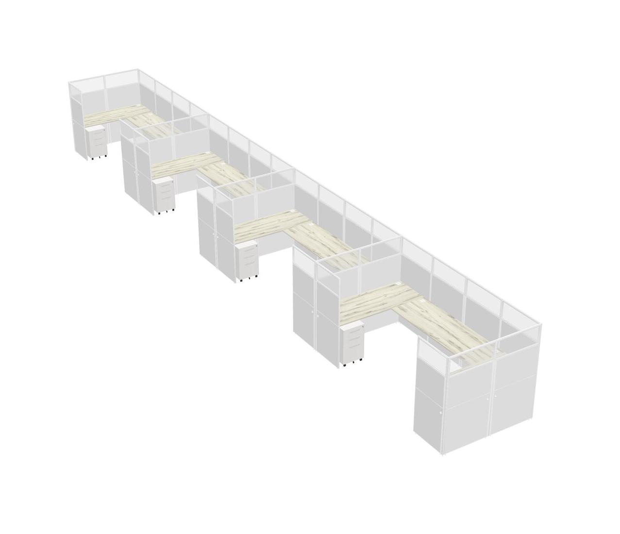 Heinne Holz U-shaped Panel System For 4 Person + Metal Mobile Drawers For 4 User(s)