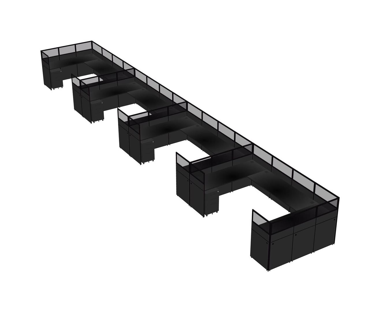Black U-shaped Panel System For 4 Person + Metal Mobile Drawers For 4 User(s)