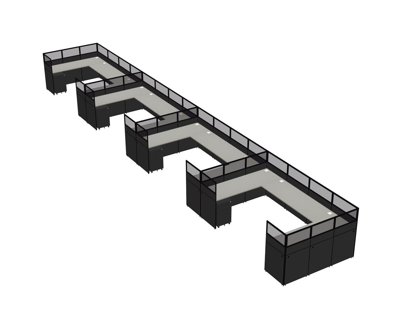 Grey Shadows U-shaped Panel System For 4 Person + Metal Mobile Drawers For 4 User(s)