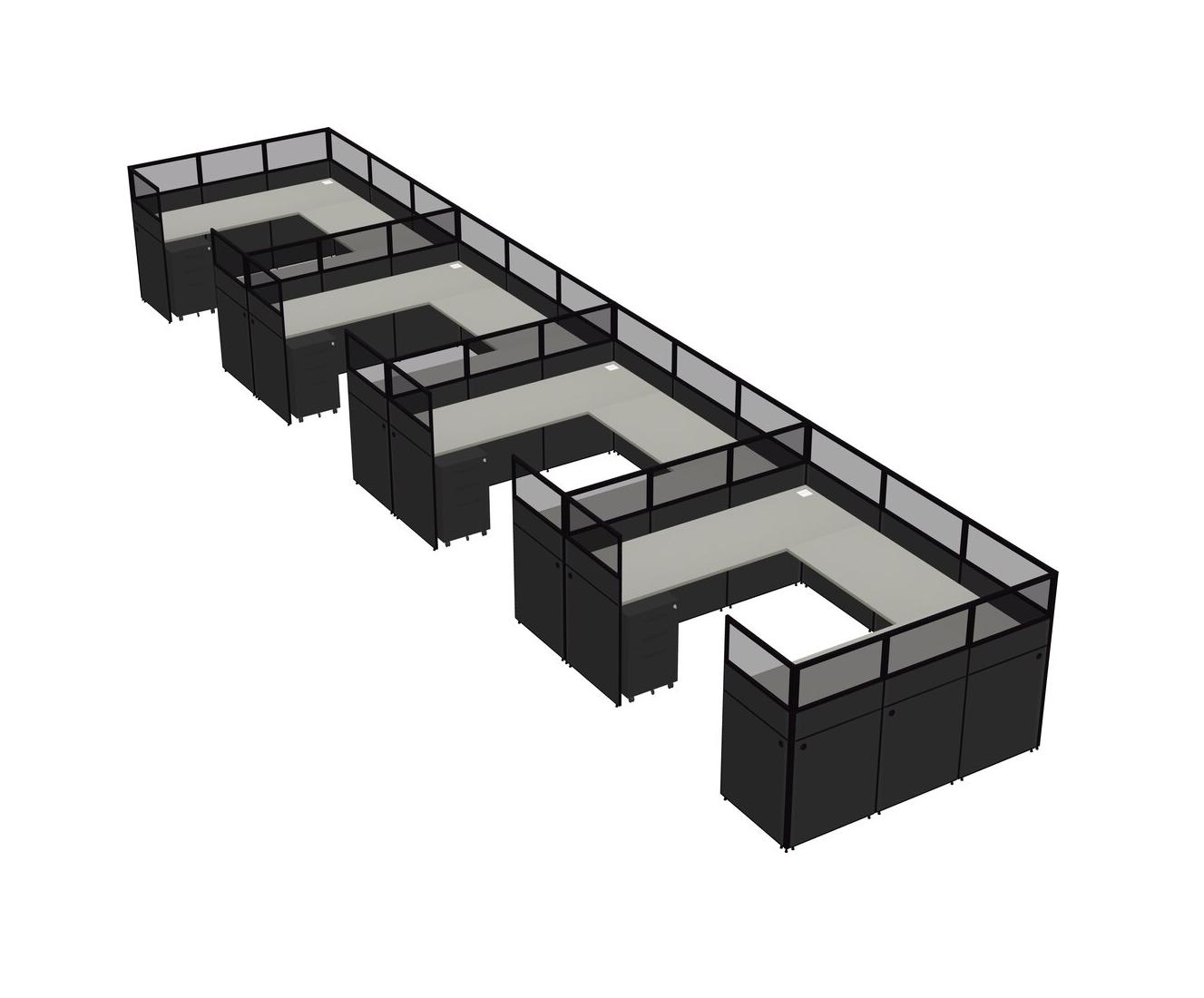 Grey Shadows U-shaped Panel System For 4 Person + Metal Mobile Drawers For 4 User(s)