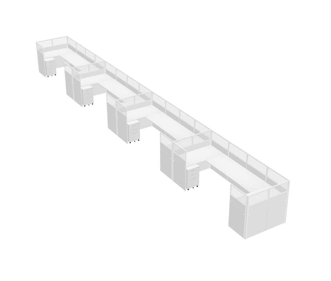 White U-shaped Panel System For 4 Person + Metal Mobile Drawers For 4 User(s)