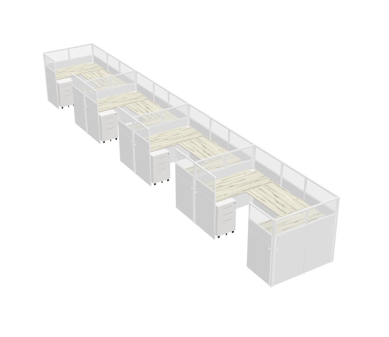 Heinne Holz U-shaped Panel System For 4 Person + Metal Mobile Drawers For 4 User(s)