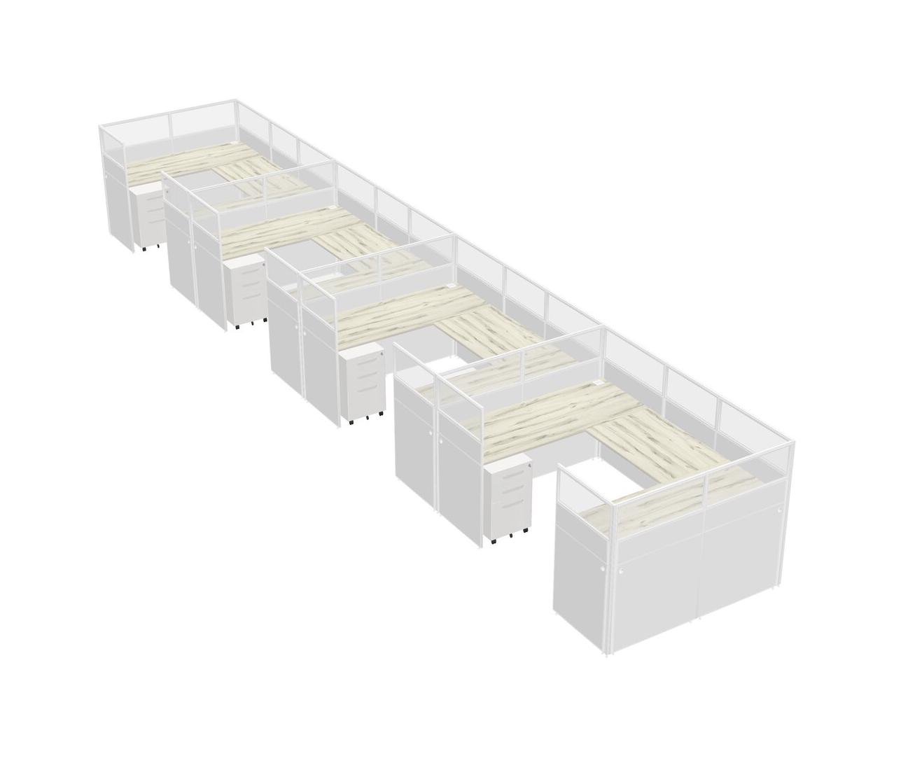 Heinne Holz U-shaped Panel System For 4 Person + Metal Mobile Drawers For 4 User(s)