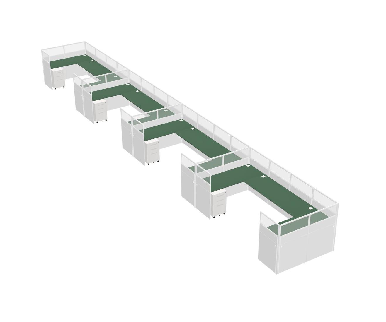 Green U-shaped Panel System For 4 Person + Metal Mobile Drawers For 4 User(s)