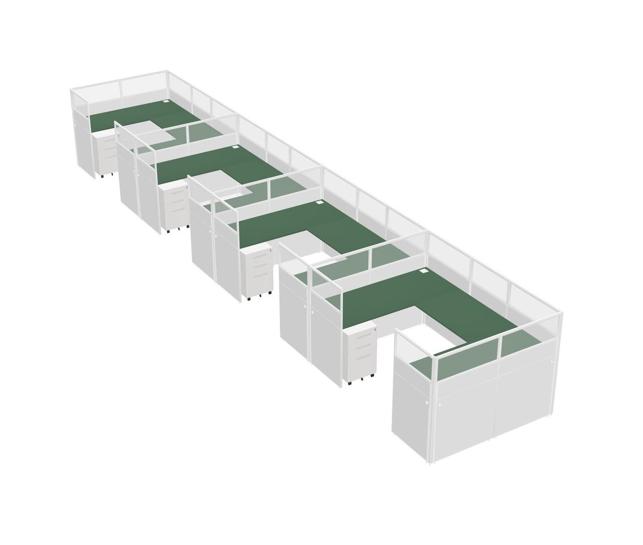 Green U-shaped Panel System For 4 Person + Metal Mobile Drawers For 4 User(s)