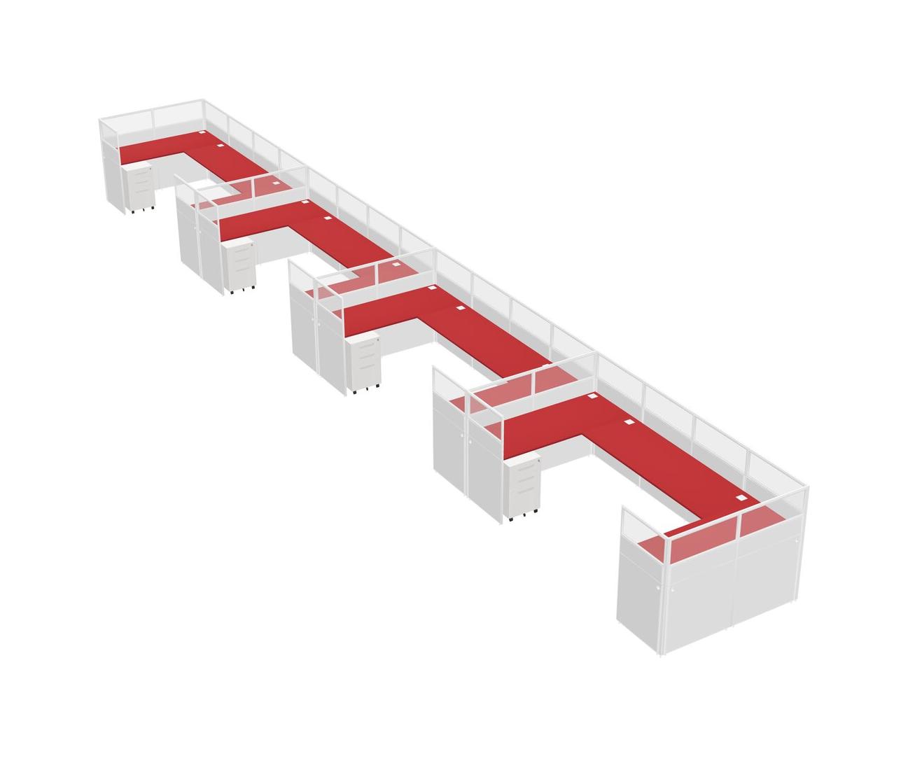 Prism Red U-shaped Panel System For 4 Person + Metal Mobile Drawers For 4 User(s)