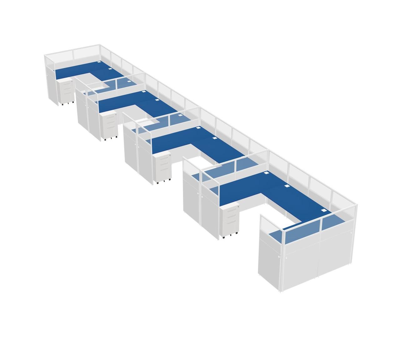 Prism Blue U-shaped Panel System For 4 Person + Metal Mobile Drawers For 4 User(s)