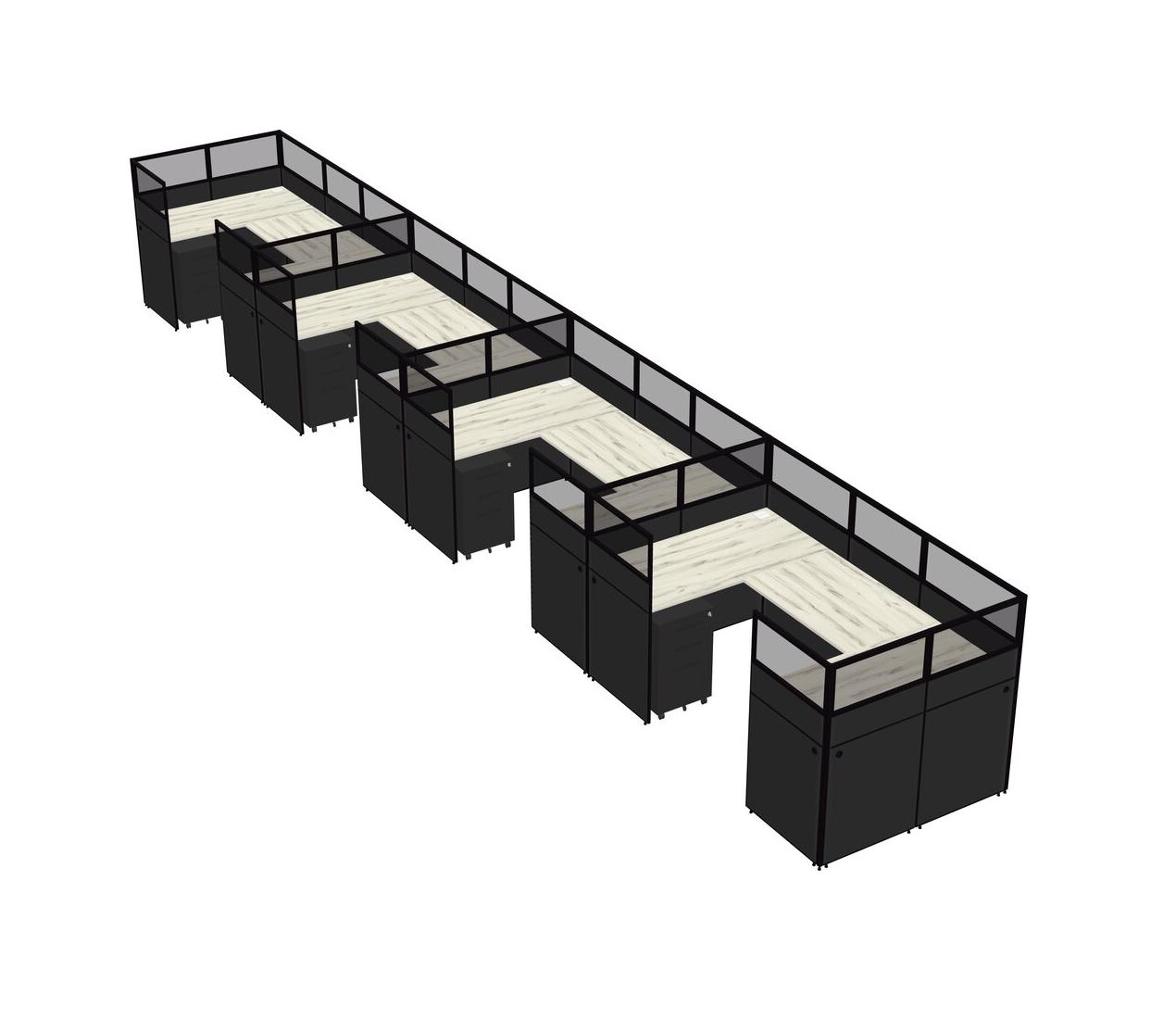 Heinne Holz U-shaped Panel System For 4 Person + Metal Mobile Drawers For 4 User(s)