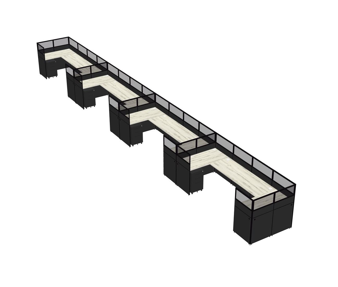 Heinne Holz U-shaped Panel System For 4 Person + Metal Mobile Drawers For 4 User(s)