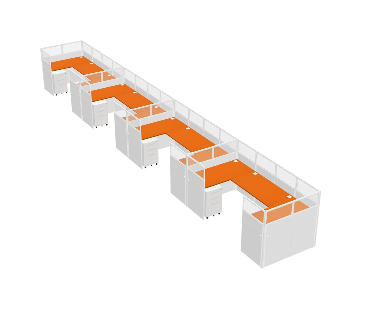 Orange U-shaped Panel System For 4 Person + Metal Mobile Drawers For 4 User(s)