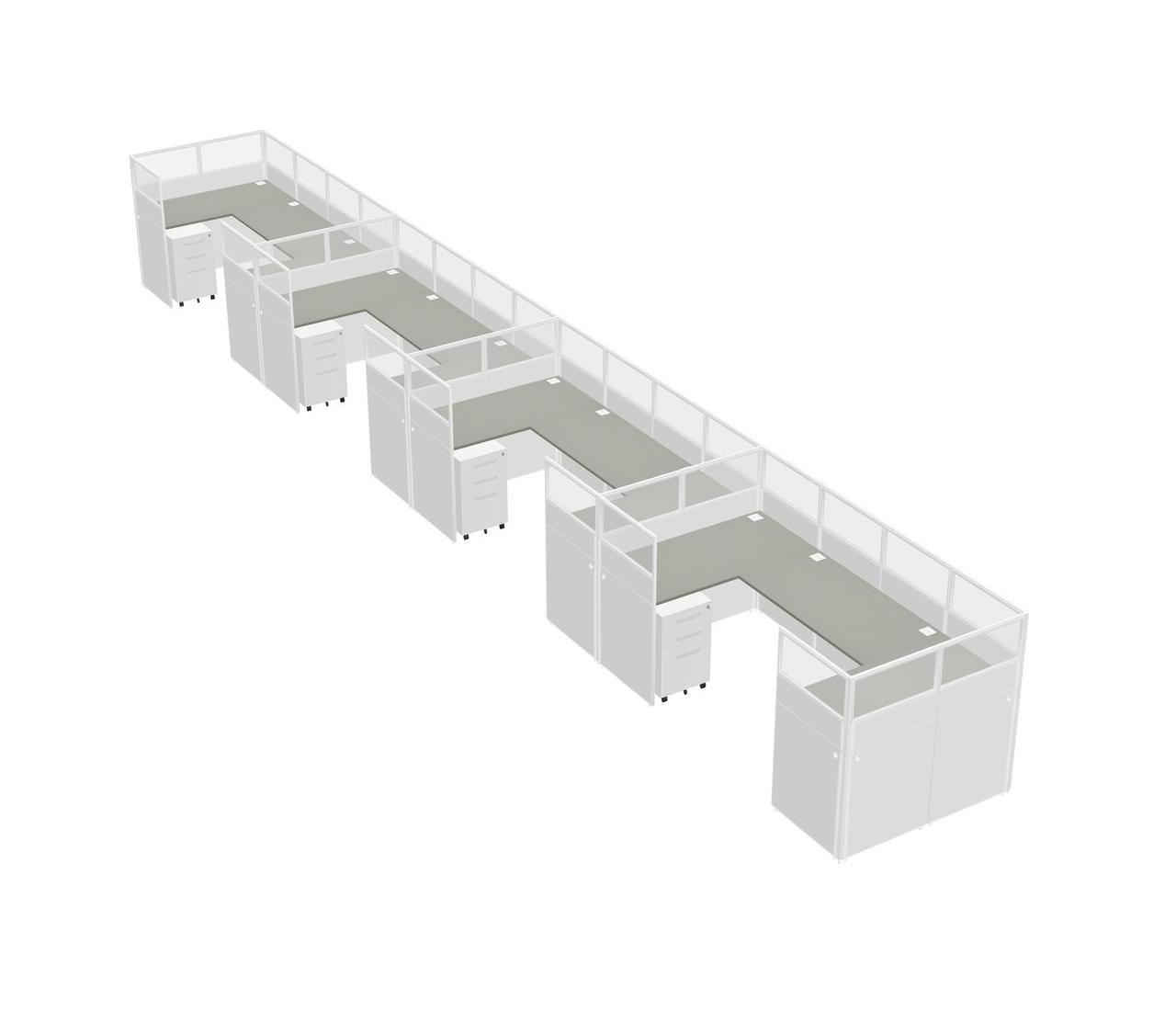 Grey Shadows U-shaped Panel System For 4 Person + Metal Mobile Drawers For 4 User(s)