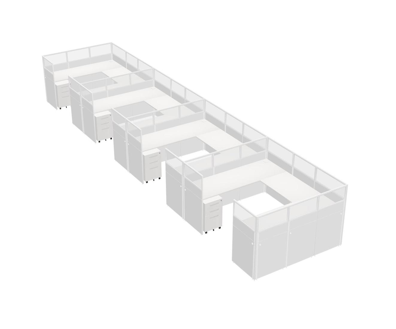 White U-shaped Panel System For 4 Person + Metal Mobile Drawers For 4 User(s)
