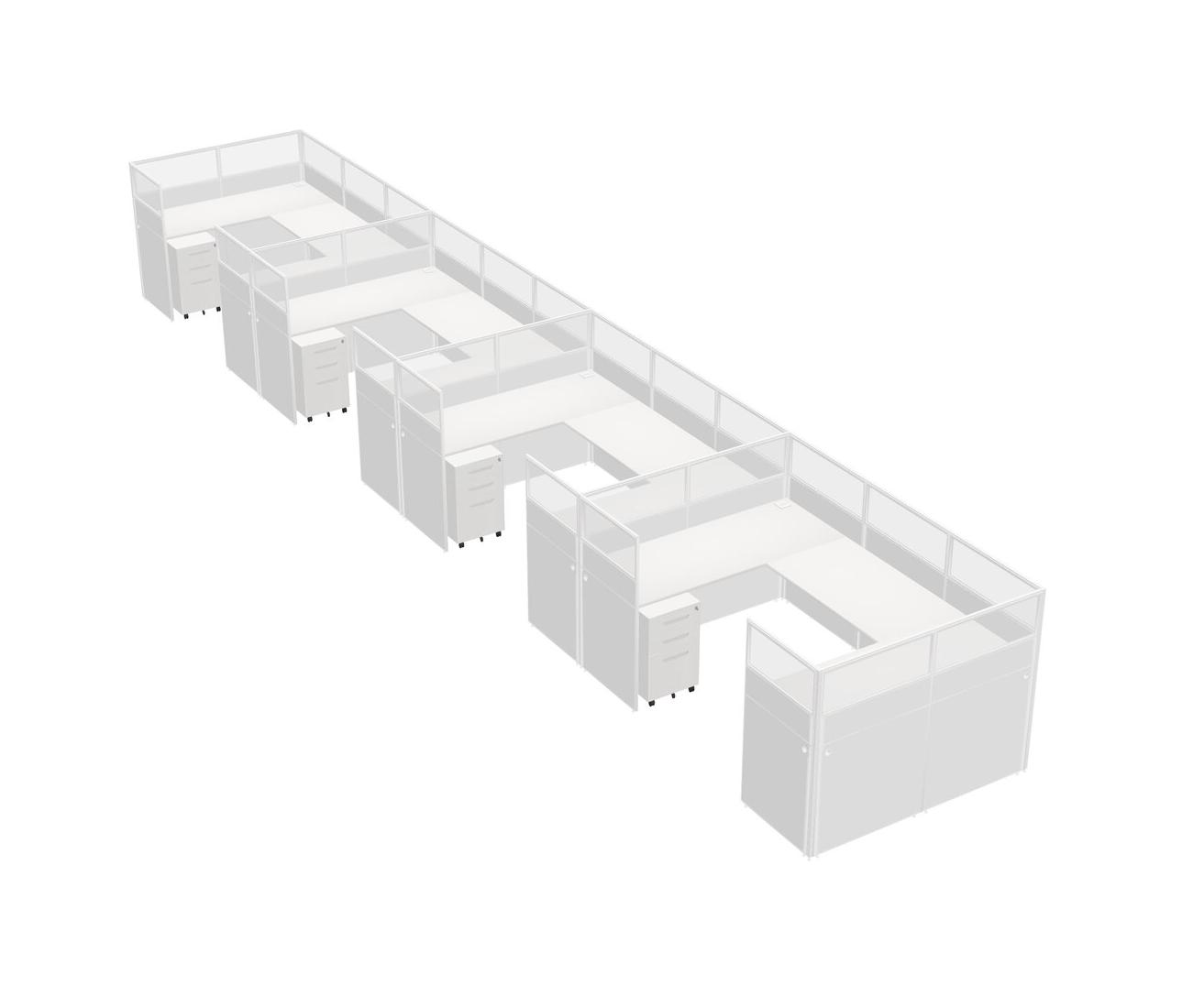 White U-shaped Panel System For 4 Person + Metal Mobile Drawers For 4 User(s)