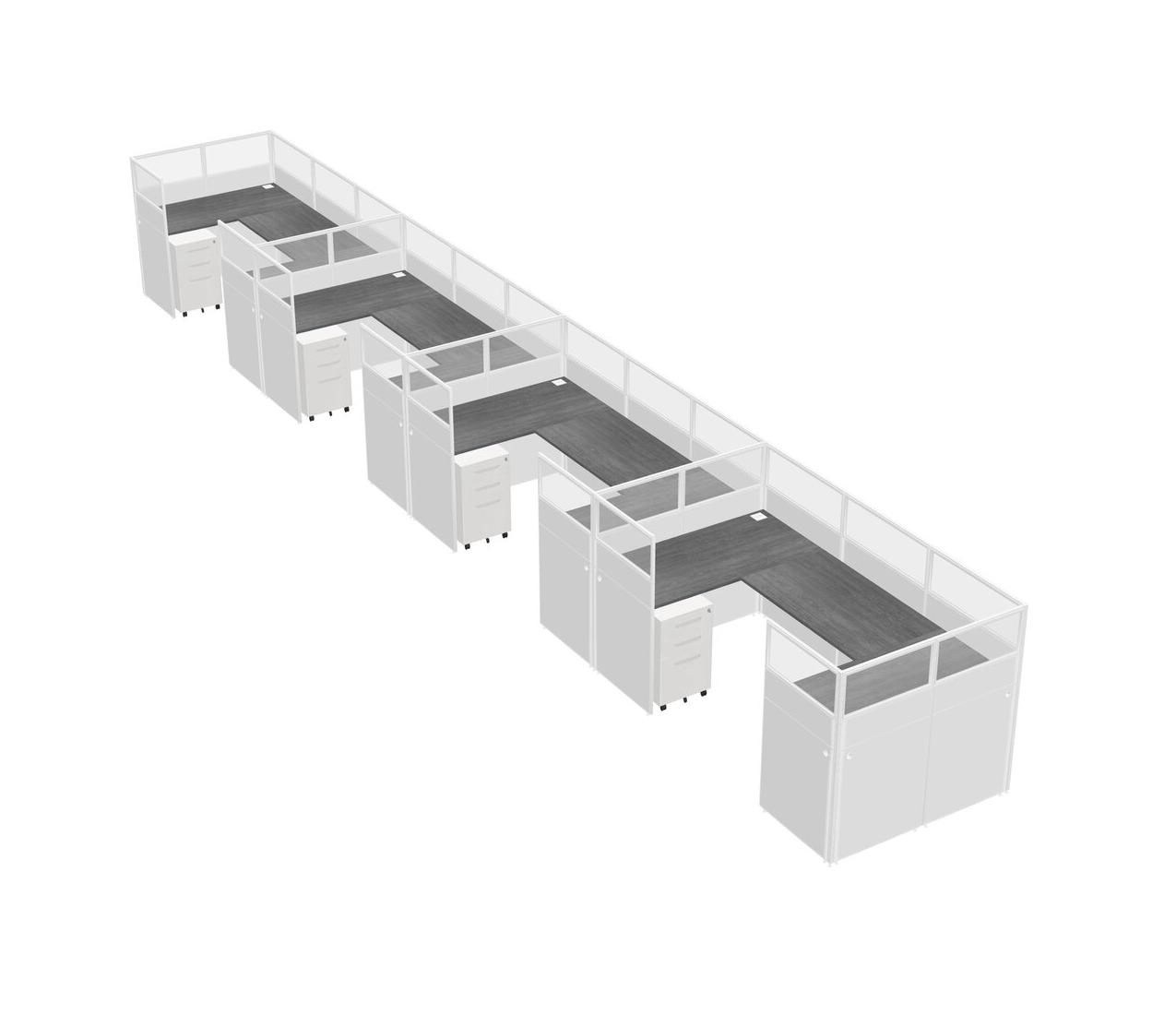 Grey U-shaped Panel System For 4 Person + Metal Mobile Drawers For 4 User(s)