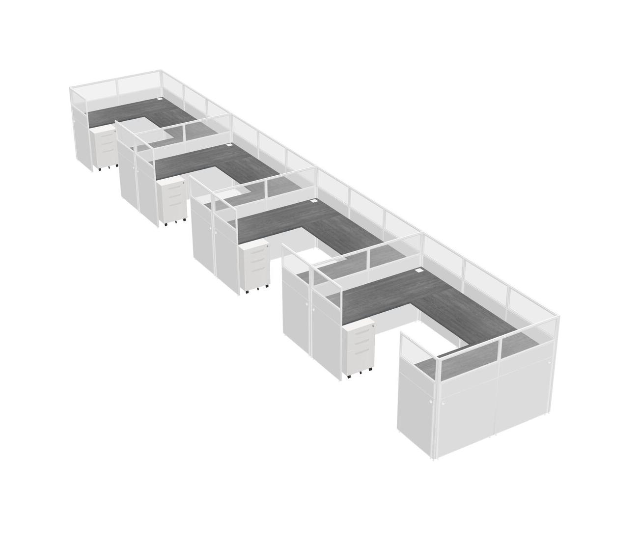 Grey U-shaped Panel System For 4 Person + Metal Mobile Drawers For 4 User(s)