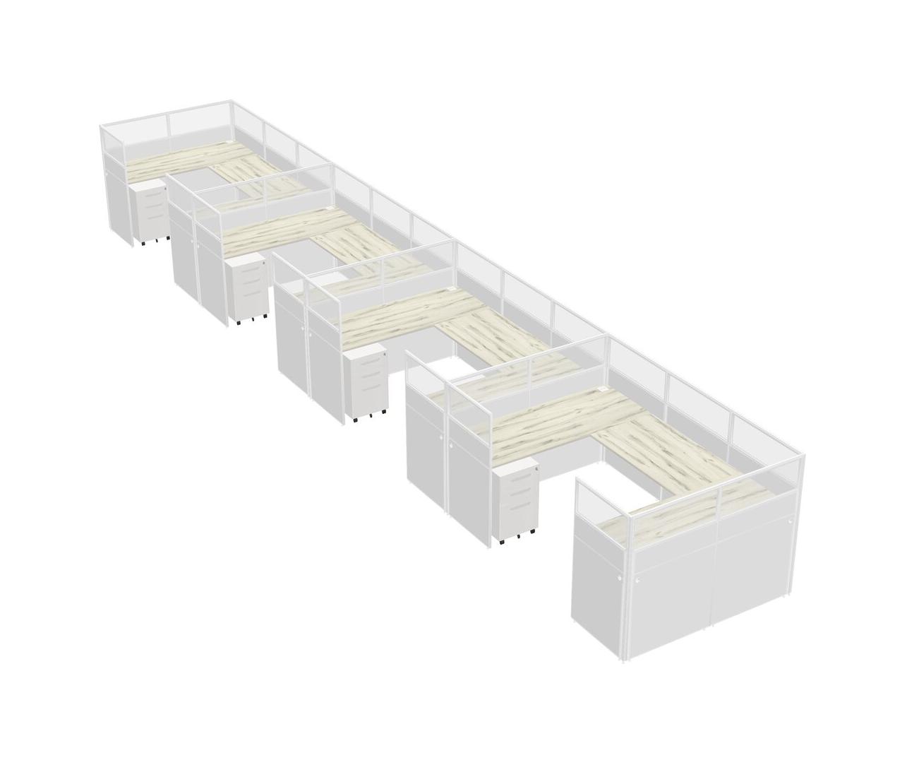 Heinne Holz U-shaped Panel System For 4 Person + Metal Mobile Drawers For 4 User(s)