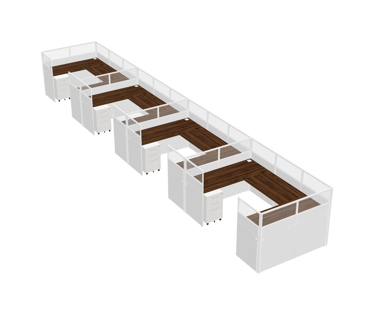 Columbia Walnut U-shaped Panel System For 4 Person + Metal Mobile Drawers For 4 User(s)
