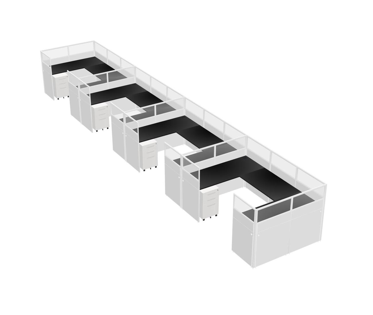 Black U-shaped Panel System For 4 Person + Metal Mobile Drawers For 4 User(s)