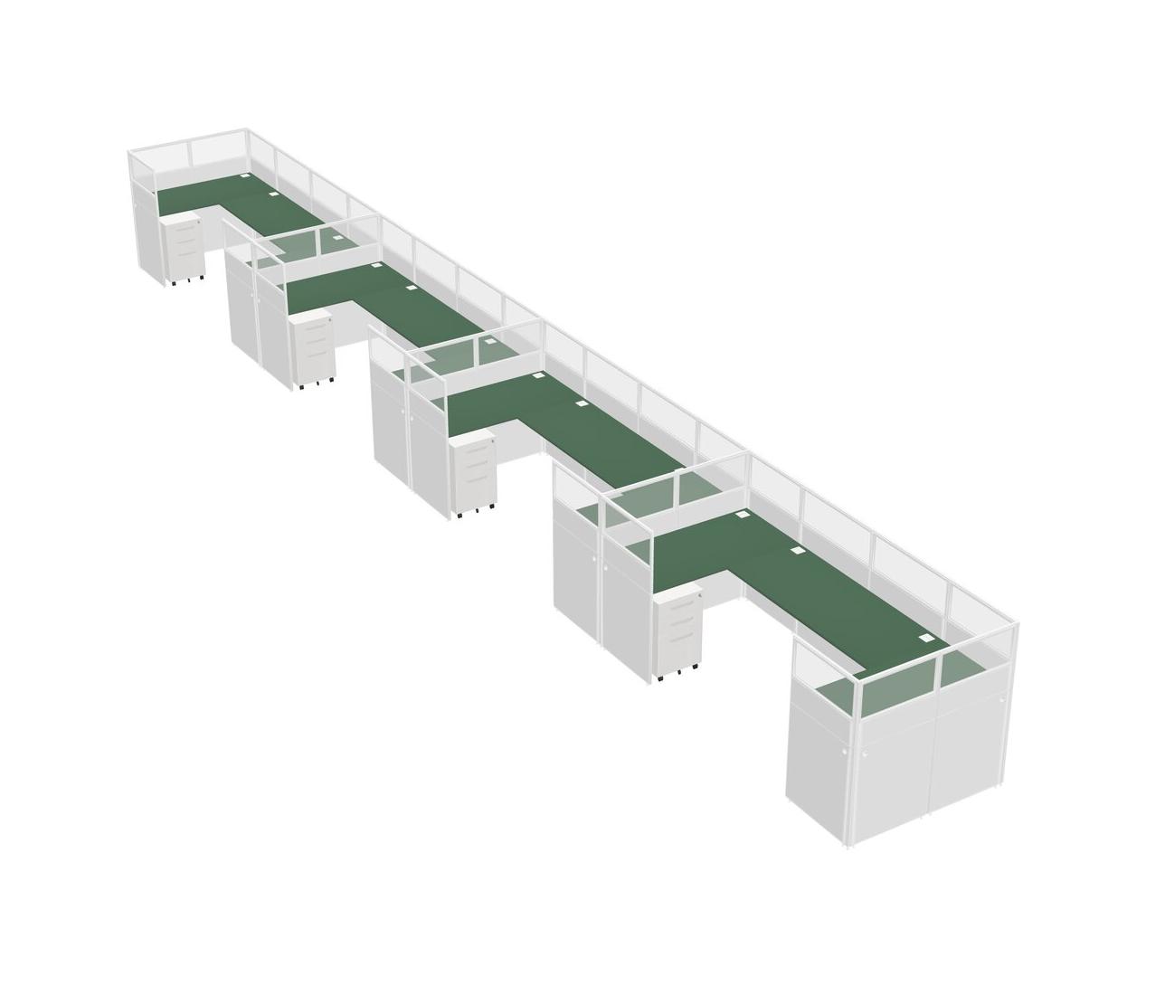 Green U-shaped Panel System For 4 Person + Metal Mobile Drawers For 4 User(s)