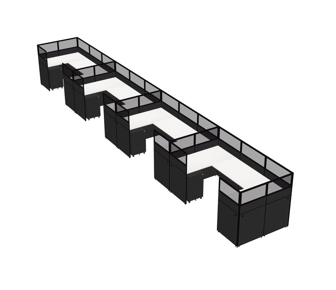 White U-shaped Panel System For 4 Person + Metal Mobile Drawers For 4 User(s)