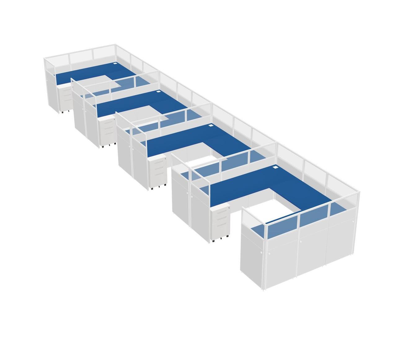 Prism Blue U-shaped Panel System For 4 Person + Metal Mobile Drawers For 4 User(s)