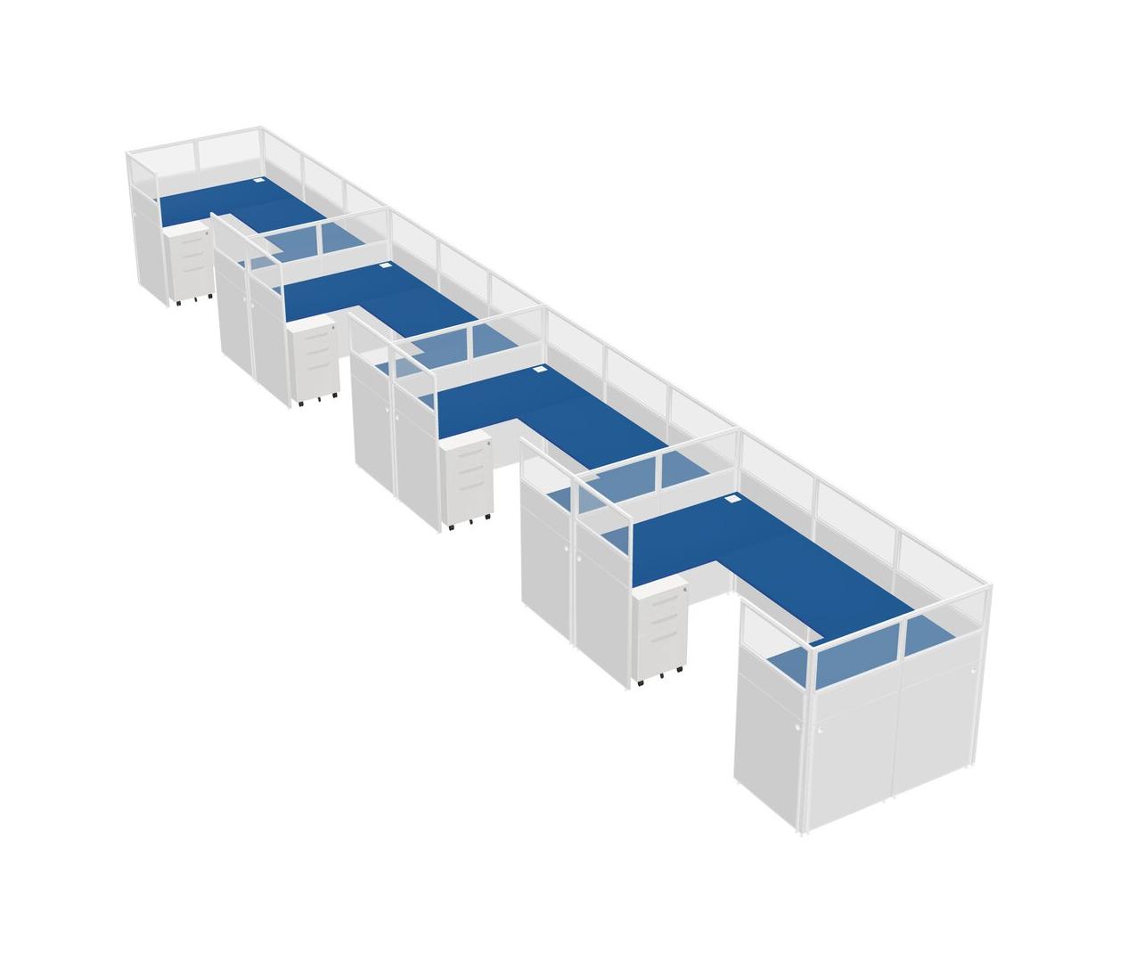 Prism Blue U-shaped Panel System For 4 Person + Metal Mobile Drawers For 4 User(s)