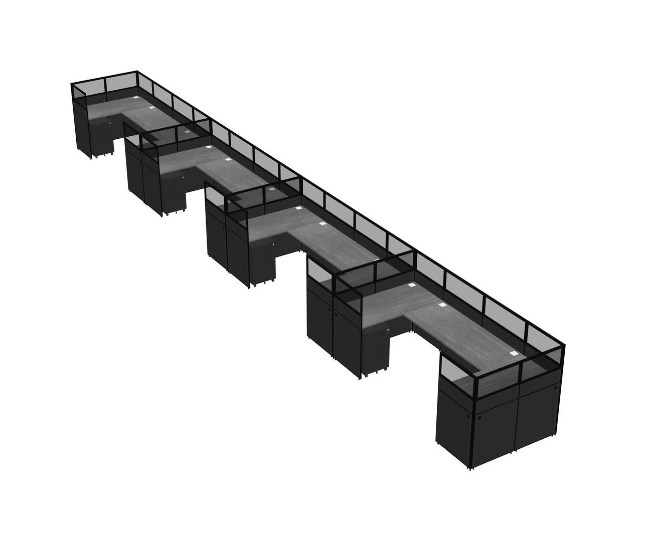 Grey U-shaped Panel System For 4 Person + Metal Mobile Drawers For 4 User(s)