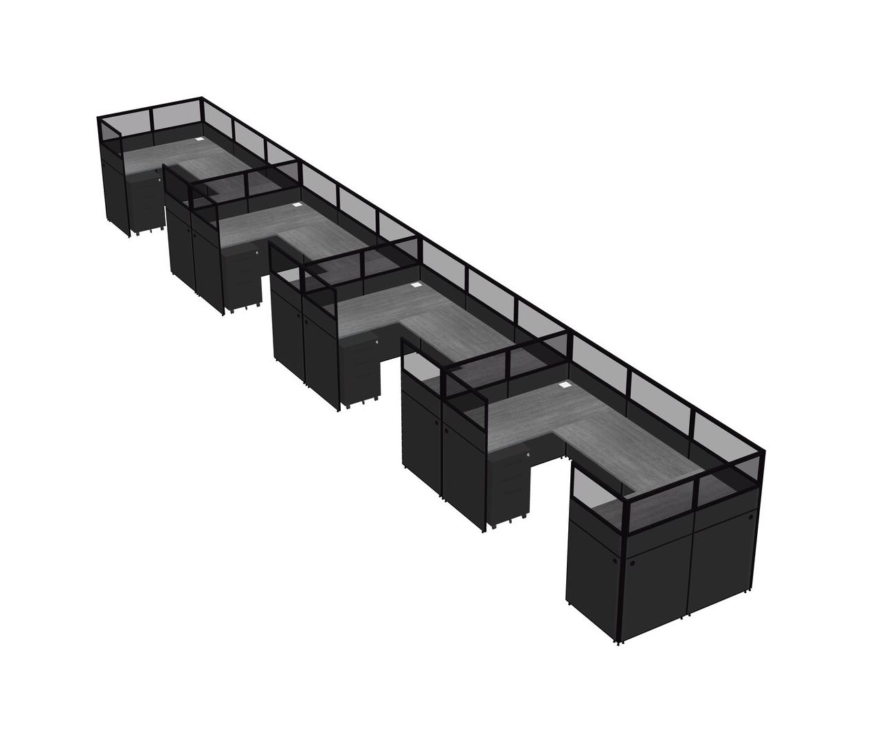 Grey U-shaped Panel System For 4 Person + Metal Mobile Drawers For 4 User(s)
