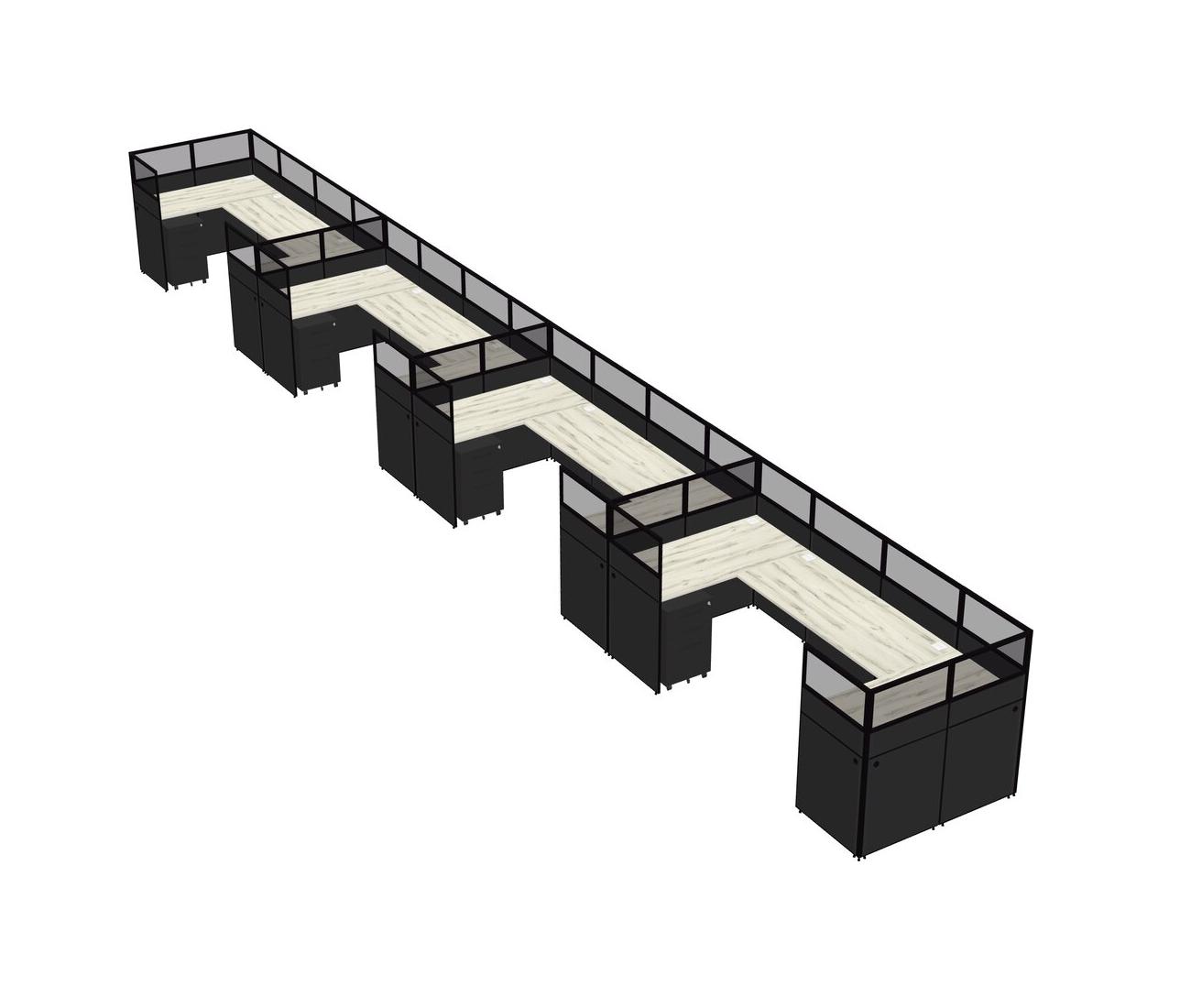 Heinne Holz U-shaped Panel System For 4 Person + Metal Mobile Drawers For 4 User(s)