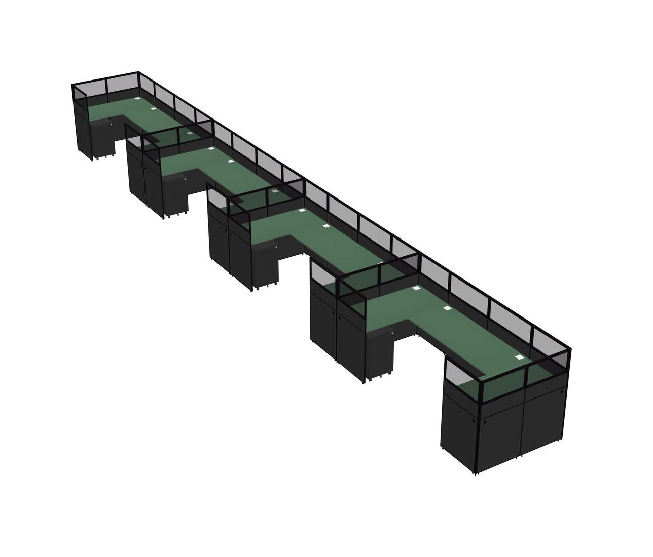 Green U-shaped Panel System For 4 Person + Metal Mobile Drawers For 4 User(s)