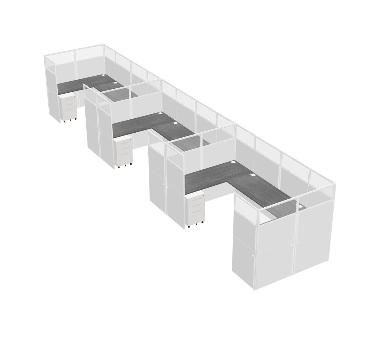 Grey U-shaped Panel System For 3 Person + Metal Mobile Drawers For 3 User(s)