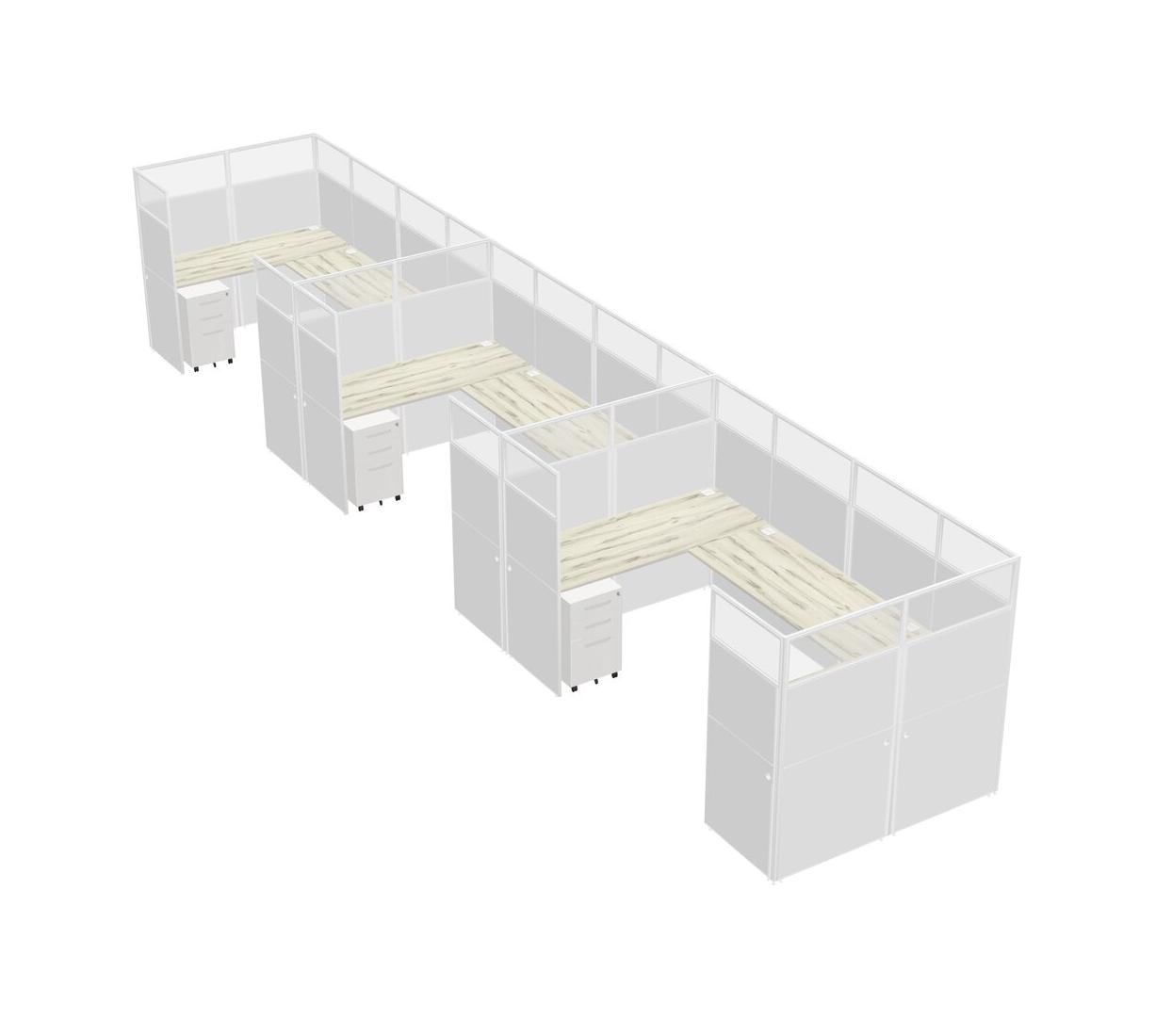 Heinne Holz U-shaped Panel System For 3 Person + Metal Mobile Drawers For 3 User(s)