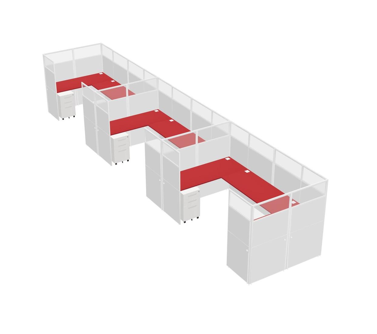 Prism Red U-shaped Panel System For 3 Person + Metal Mobile Drawers For 3 User(s)