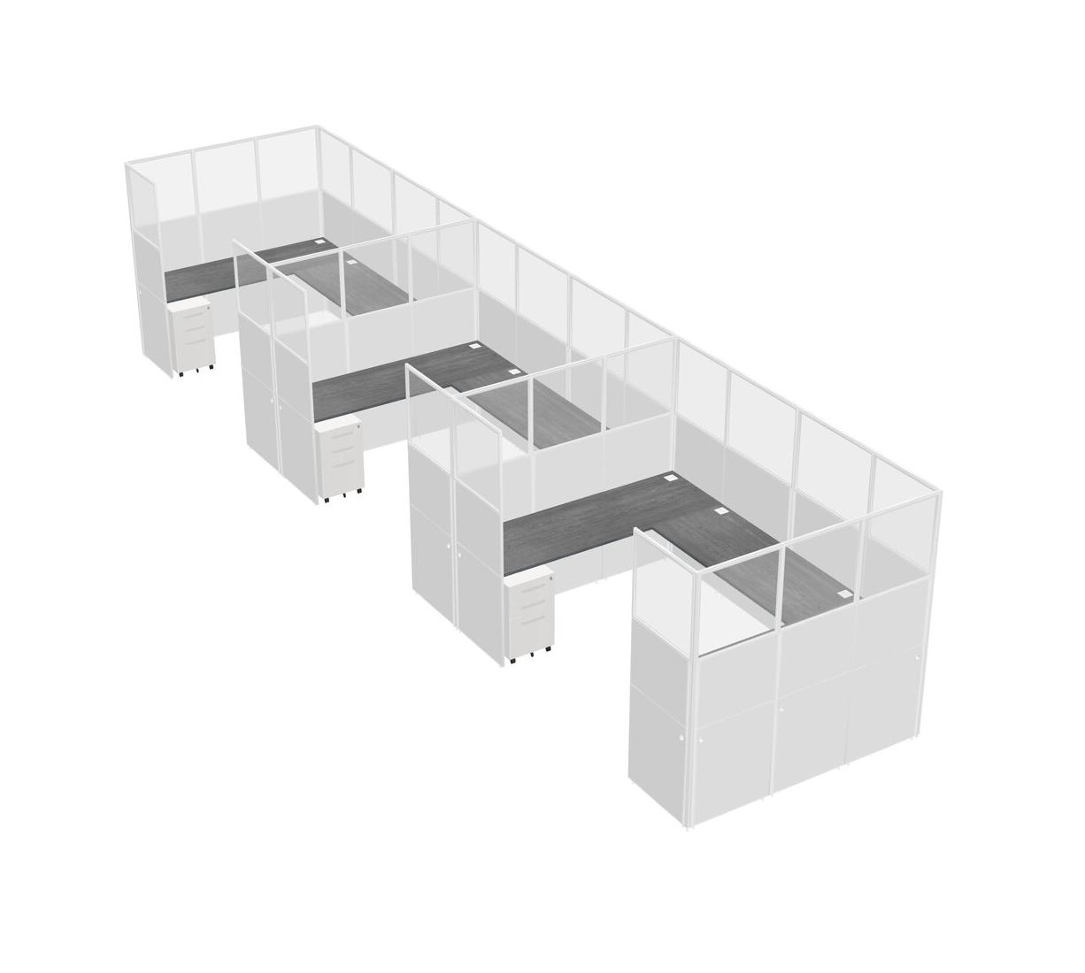 Grey U-shaped Panel System For 3 Person + Metal Mobile Drawers For 3 User(s)