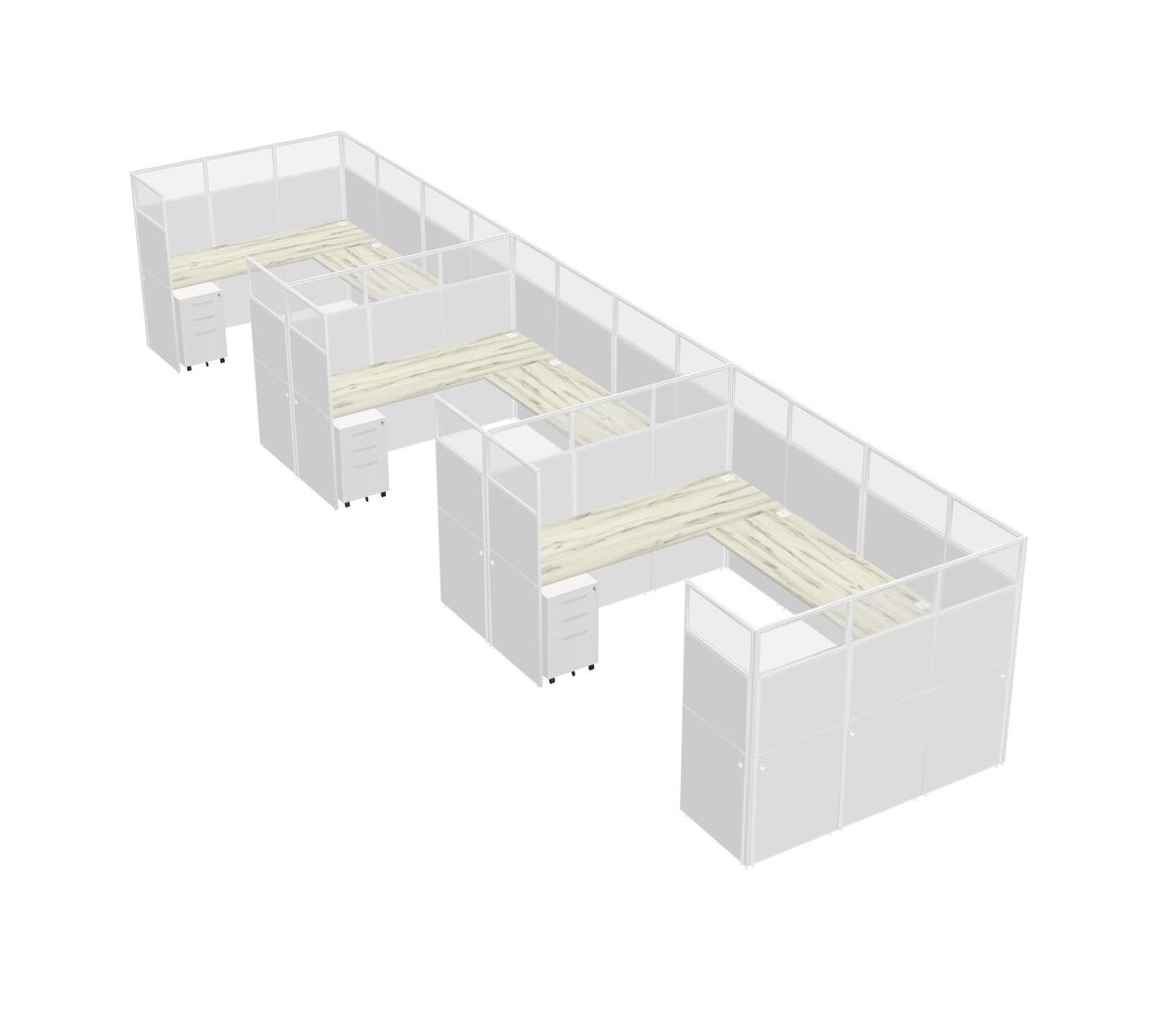 Heinne Holz U-shaped Panel System For 3 Person + Metal Mobile Drawers For 3 User(s)