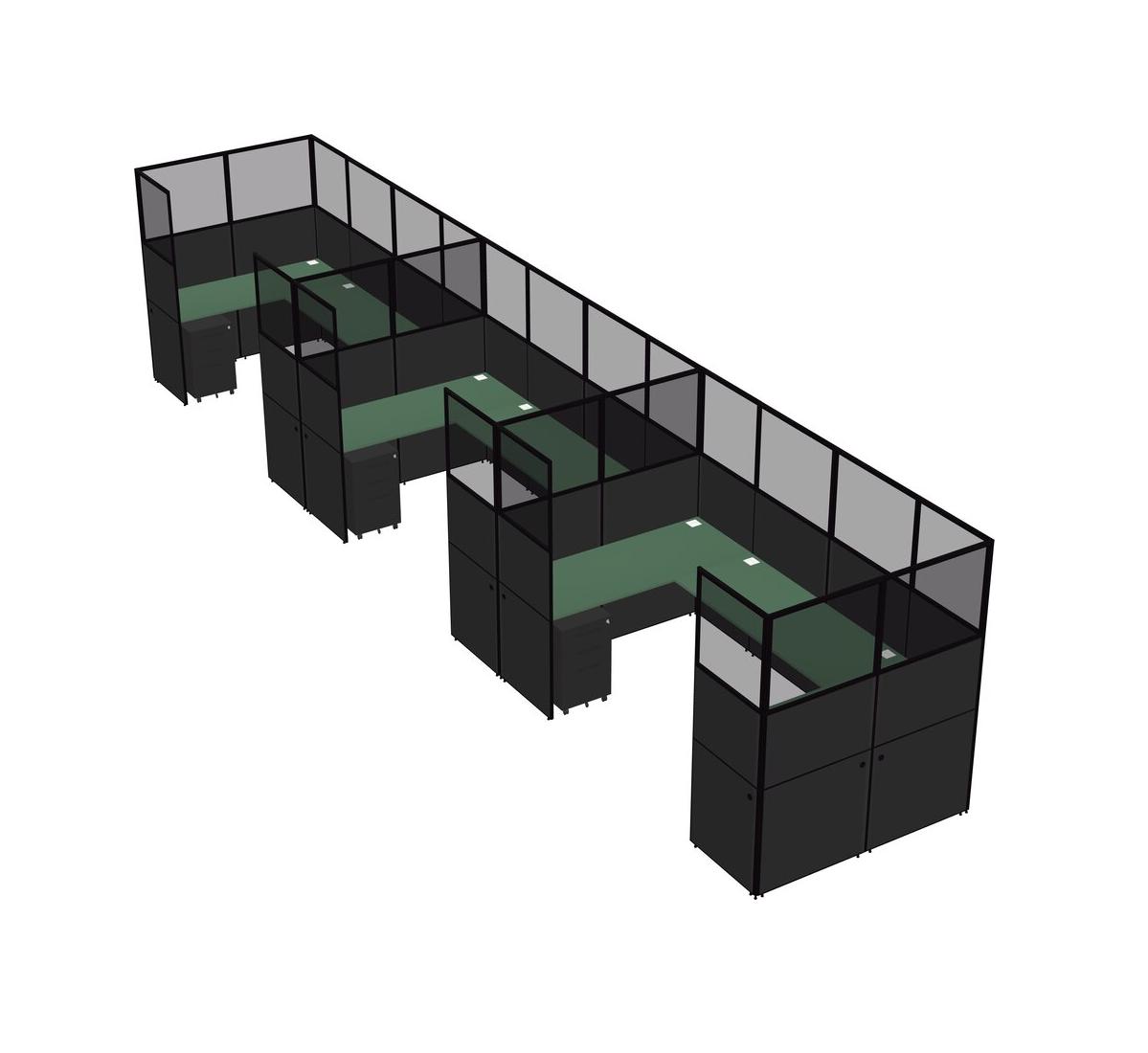 Green U-shaped Panel System For 3 Person + Metal Mobile Drawers For 3 User(s)