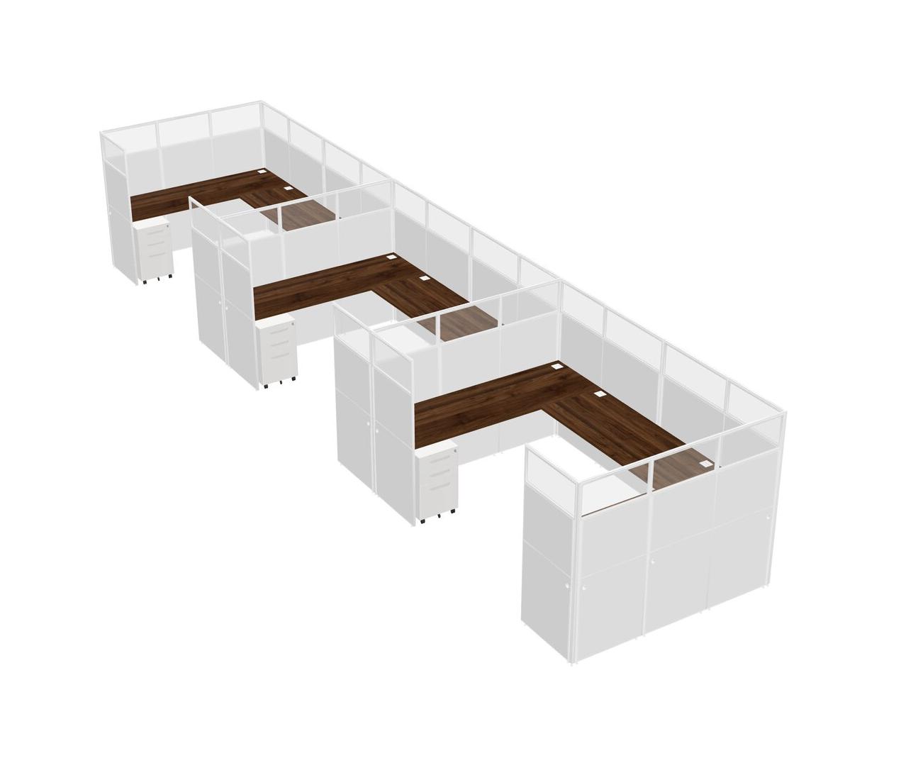Columbia Walnut U-shaped Panel System For 3 Person + Metal Mobile Drawers For 3 User(s)