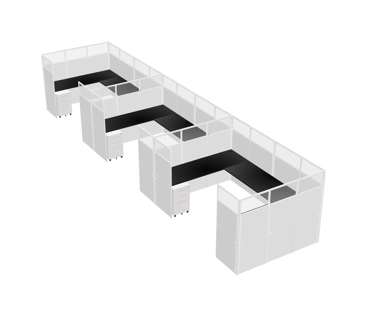 Black U-shaped Panel System For 3 Person + Metal Mobile Drawers For 3 User(s)