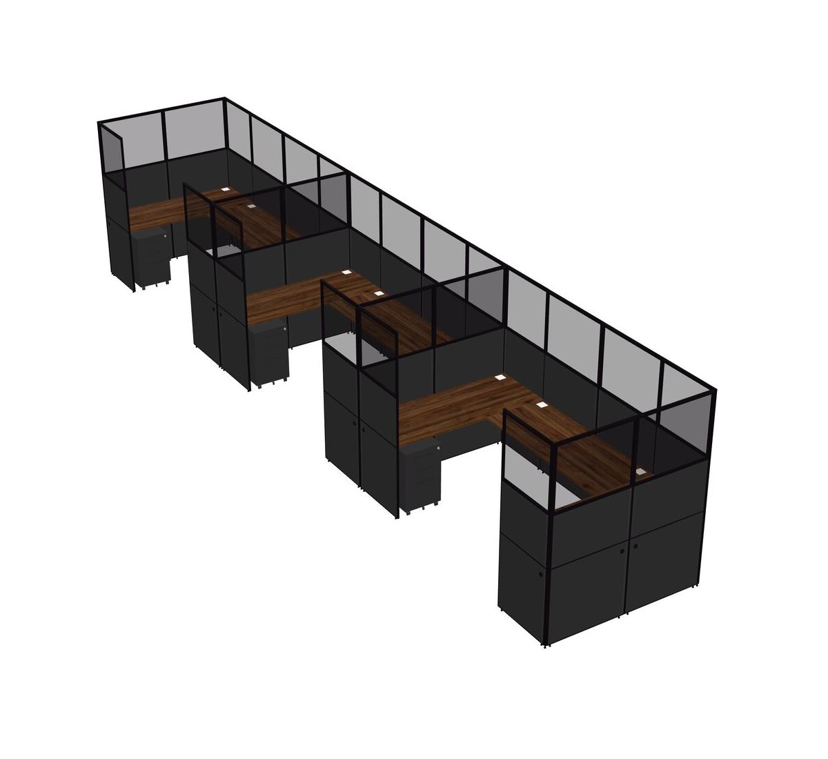 Columbia Walnut U-shaped Panel System For 3 Person + Metal Mobile Drawers For 3 User(s)