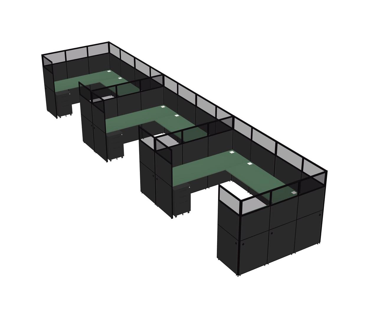 Green U-shaped Panel System For 3 Person + Metal Mobile Drawers For 3 User(s)