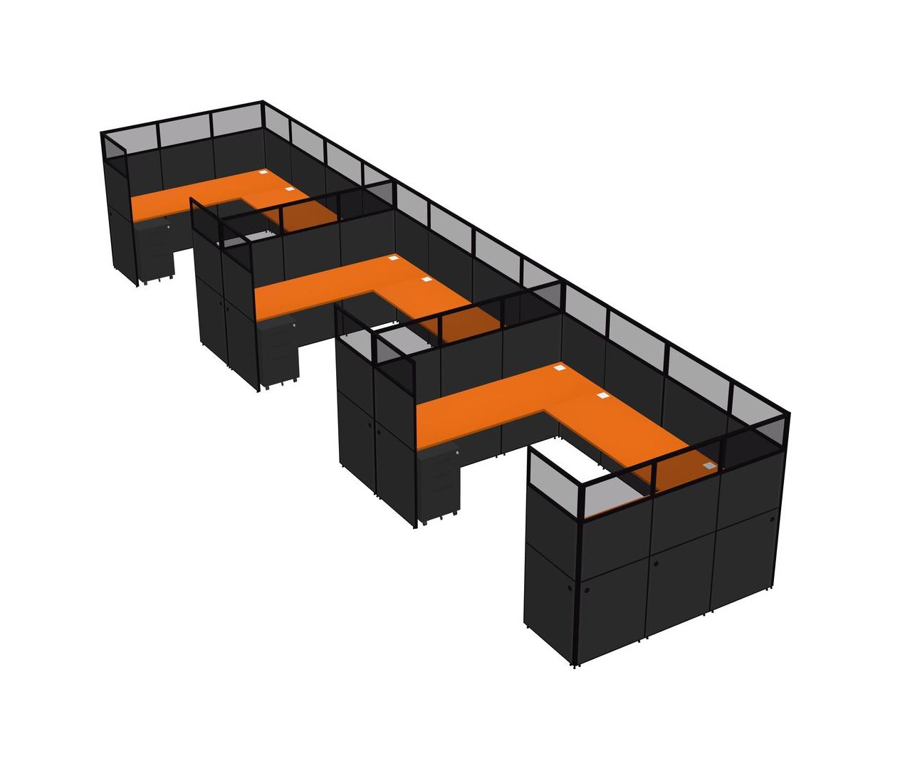 Orange U-shaped Panel System For 3 Person + Metal Mobile Drawers For 3 User(s)
