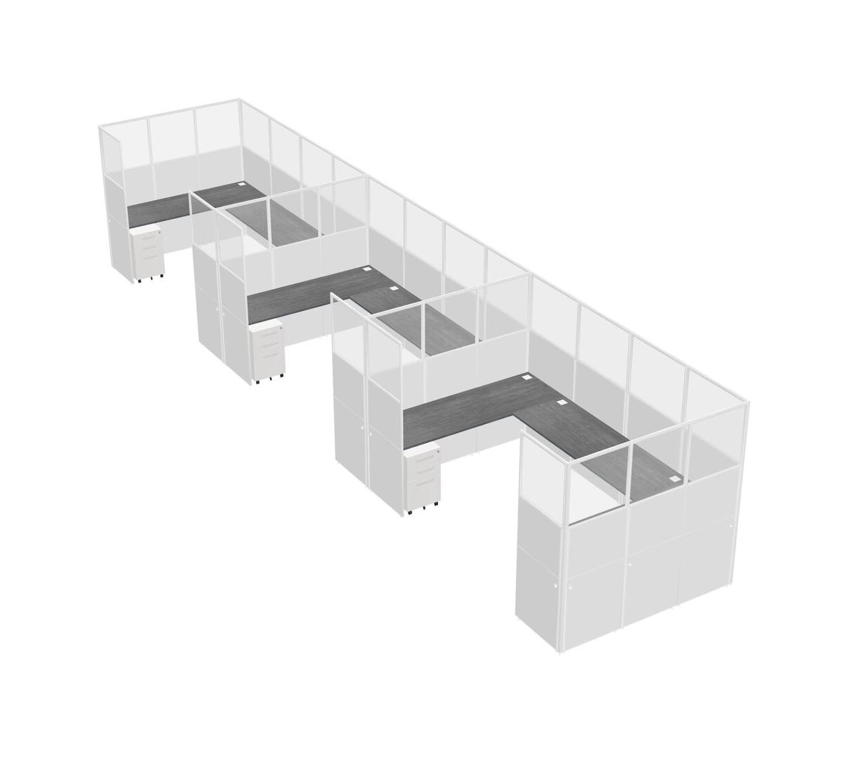 Grey U-shaped Panel System For 3 Person + Metal Mobile Drawers For 3 User(s)