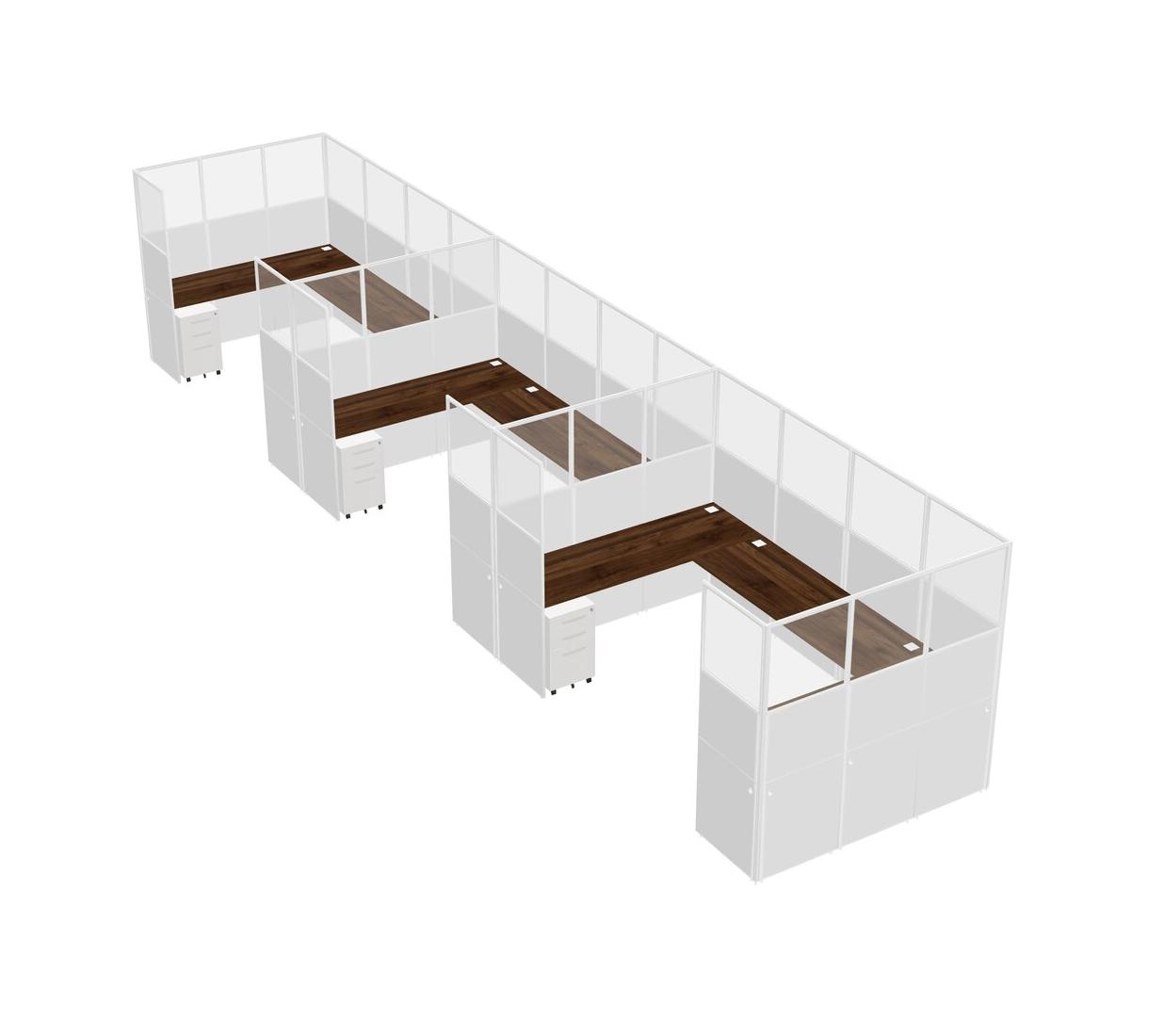 Columbia Walnut U-shaped Panel System For 3 Person + Metal Mobile Drawers For 3 User(s)