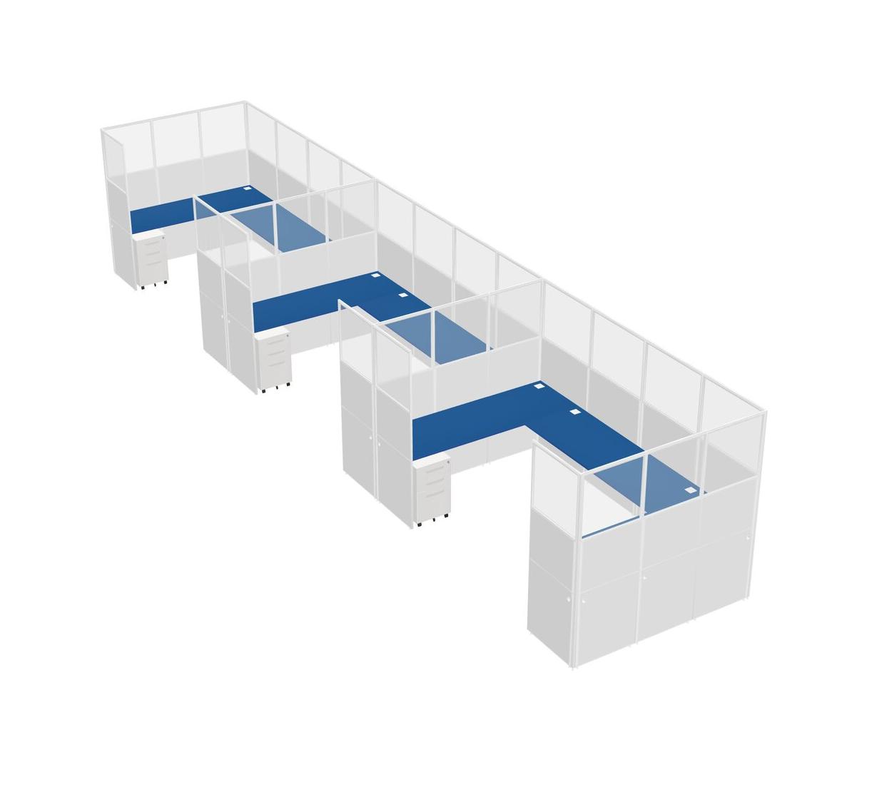 Prism Blue U-shaped Panel System For 3 Person + Metal Mobile Drawers For 3 User(s)